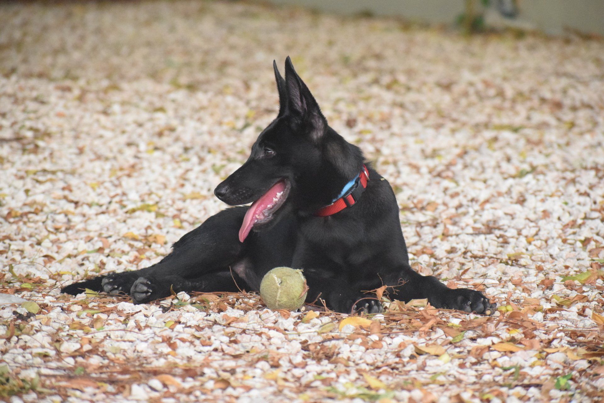 Sinds 21 juni is ons huishouden uitgebreid met een jonge pup, Evlyn. Evlyn is inmiddels 12 weken oud en een enorme ondeugd! Echt een jonge pup: alles ontdekken, overal je neus insteken, alles proeven, overal achteraan rennen en Finn de weg blokkeren. Ze houdt van zwemmen en zit vol energie. 's Avonds voor het slapengaan nog even spelen met een kakkerlak (of opeten) en 's ochtendsvroeg een korte blaf als je moet plassen. Finn moet het regelmatig ontgelden en is al menig plukken haar kwijt.