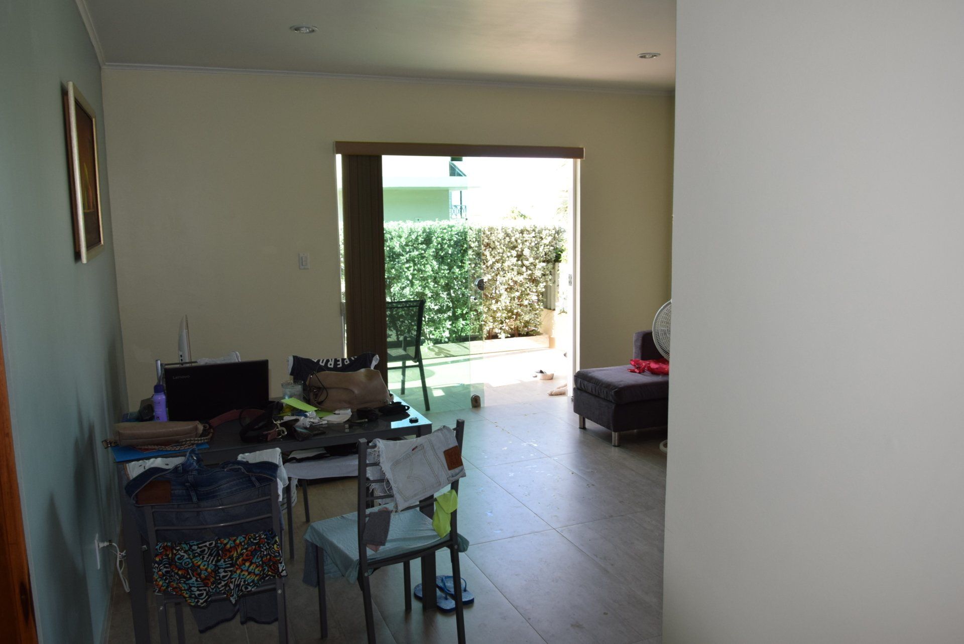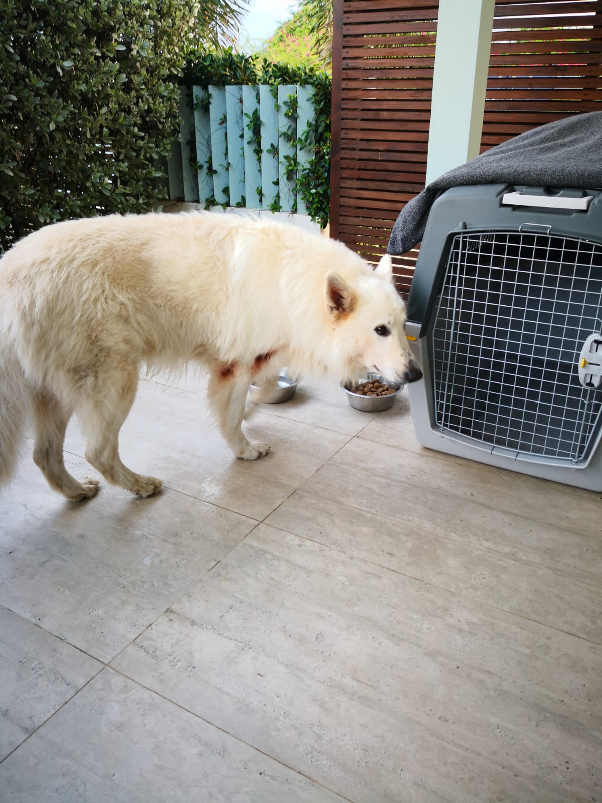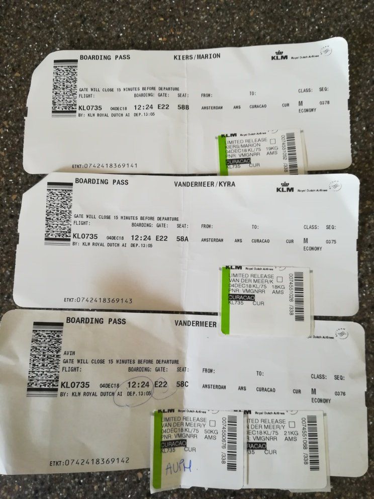 En daar stonden we dan, op het vliegveld. Tickets in de hand en 3 karren volgeladen. 2 Met bagage en 1 met een zenuwachtige Finn, al viel ons dat best mee. Omdat we Finn bij ons hadden, ging het inchecken erg snel. We hebben daarna al snel afscheid genomen van Finn en na nog een aantal lange rijen waren alle controles doorlopen. Snel nog even wat eten en tax-free shoppen (we ruiken allemaal erg lekker hierna), stappen we in het vliegtuig. We hebben van te voren plaatsen naast elkaar geboekt, waarvan 1 bij het raam. De reis duurt lang, 4 films gaan aan ons voorbij en we vragen ons constant af hoe het met Finn is. Na de landing nog een lange rij en daar zijn we dan eindelijk, met z'n allen en alle koffers lopen we de warmte in. Via Kooyman hebben we een tijdelijk onderkomen geregeld en gescheiden van elkaar rijden we er naartoe. Eddy en Kyra in onze huurauto (een VW up) en Marion in een taxibus met Finn en alle bagage. Het huisje is klein en niet v an alle gemakken voorzien, maar for the time being kan het prima. 1 van de nieuwe collega's heeft een paar boodschapjes gedaan en zo komen we de eerste nacht door. Op woensdag 5 december ontwaken we met een stevige regenbui en doen we de nodige boodschappen. We gaan 's middags op zoek naar de winkel die school-shirts voor Klein college verkoopt. Dat viel nog niet mee, het was een heel klein winkeltje en bijna zagen we hem over het hoofd, maar het is gelukt! Kyra kan in ieder geval naar school. Donderdag is Marion 's ochtend bij Kooyman geweest om de laatste dingen door te spreken. Daarna langs de immigratiedienst voor een stempel in ons paspoort, vervolgens naar de Kranchi voor onze inschrijving. Op de terugweg langs Ennia, voor onze zorgpasjes en nog even over de markt voor lokale producten. En zo is er alweer een dag voorbij......