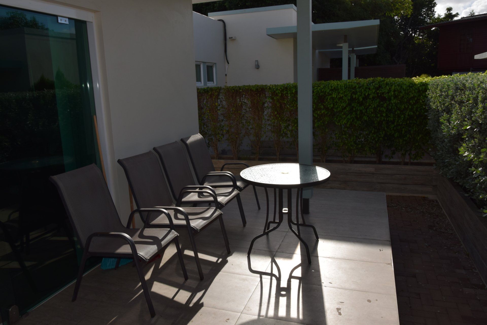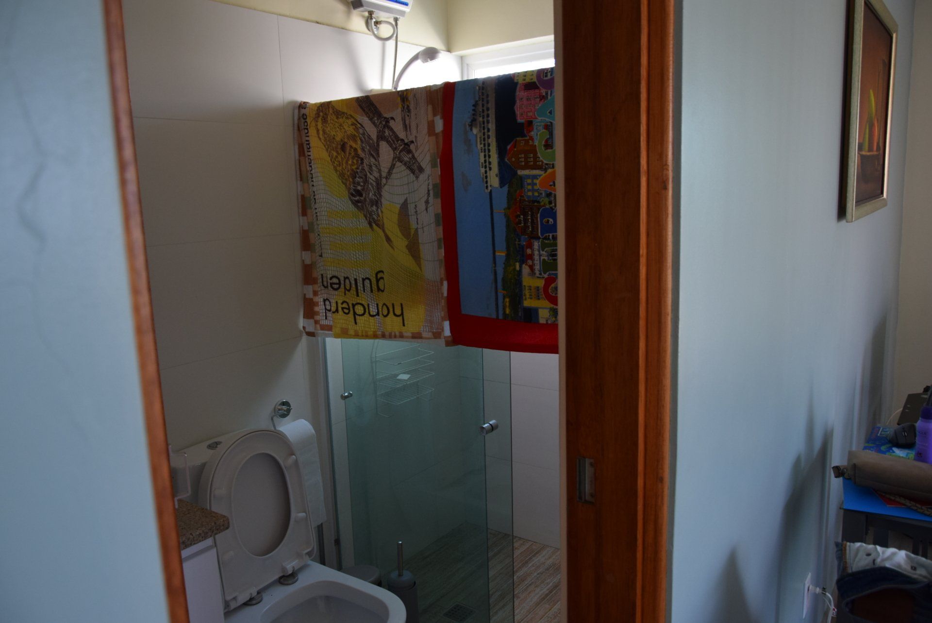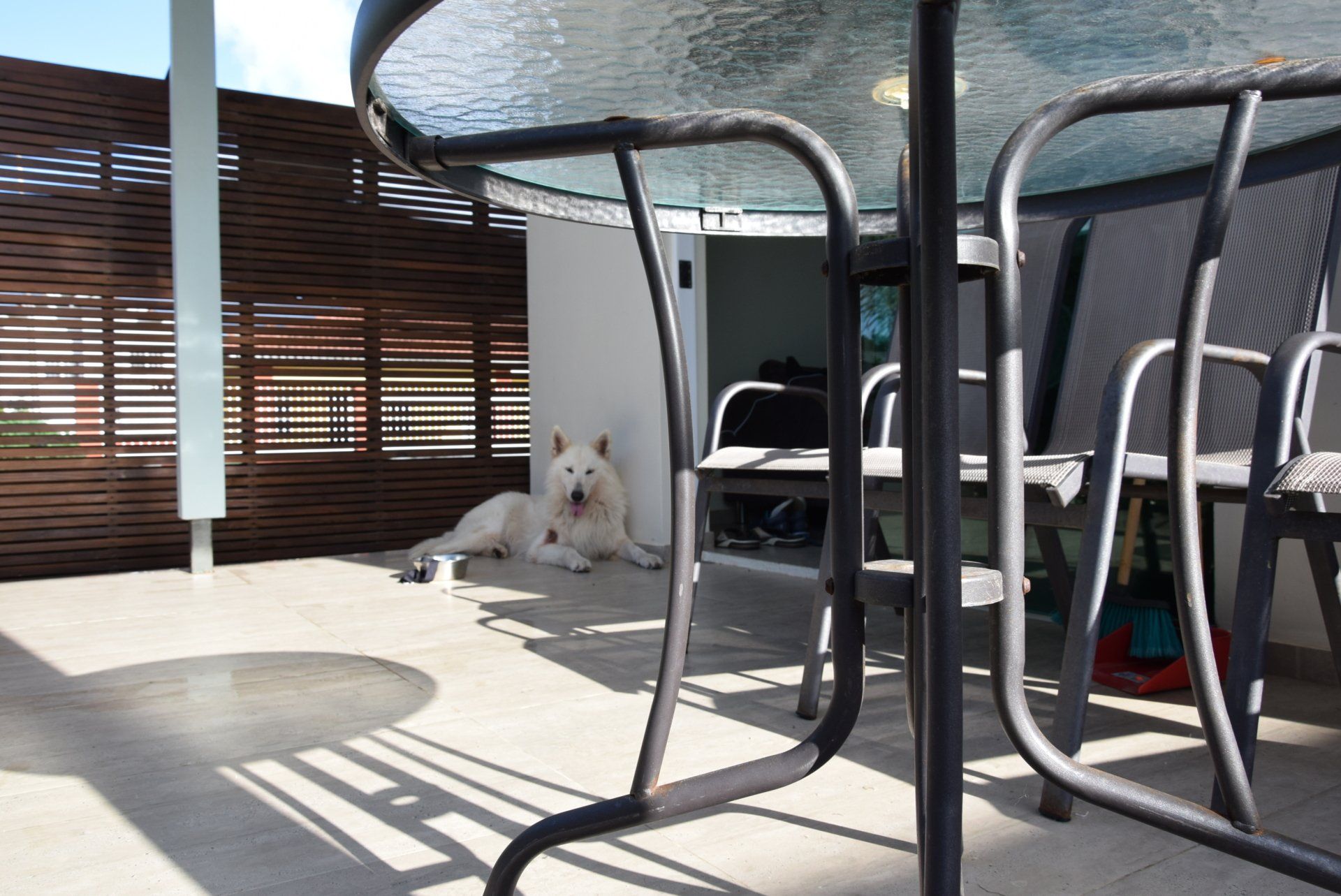 En daar stonden we dan, op het vliegveld. Tickets in de hand en 3 karren volgeladen. 2 Met bagage en 1 met een zenuwachtige Finn, al viel ons dat best mee. Omdat we Finn bij ons hadden, ging het inchecken erg snel. We hebben daarna al snel afscheid genomen van Finn en na nog een aantal lange rijen waren alle controles doorlopen. Snel nog even wat eten en tax-free shoppen (we ruiken allemaal erg lekker hierna), stappen we in het vliegtuig. We hebben van te voren plaatsen naast elkaar geboekt, waarvan 1 bij het raam. De reis duurt lang, 4 films gaan aan ons voorbij en we vragen ons constant af hoe het met Finn is. Na de landing nog een lange rij en daar zijn we dan eindelijk, met z'n allen en alle koffers lopen we de warmte in. Via Kooyman hebben we een tijdelijk onderkomen geregeld en gescheiden van elkaar rijden we er naartoe. Eddy en Kyra in onze huurauto (een VW up) en Marion in een taxibus met Finn en alle bagage. Het huisje is klein en niet v an alle gemakken voorzien, maar for the time being kan het prima. 1 van de nieuwe collega's heeft een paar boodschapjes gedaan en zo komen we de eerste nacht door. Op woensdag 5 december ontwaken we met een stevige regenbui en doen we de nodige boodschappen. We gaan 's middags op zoek naar de winkel die school-shirts voor Klein college verkoopt. Dat viel nog niet mee, het was een heel klein winkeltje en bijna zagen we hem over het hoofd, maar het is gelukt! Kyra kan in ieder geval naar school. Donderdag is Marion 's ochtend bij Kooyman geweest om de laatste dingen door te spreken. Daarna langs de immigratiedienst voor een stempel in ons paspoort, vervolgens naar de Kranchi voor onze inschrijving. Op de terugweg langs Ennia, voor onze zorgpasjes en nog even over de markt voor lokale producten. En zo is er alweer een dag voorbij......