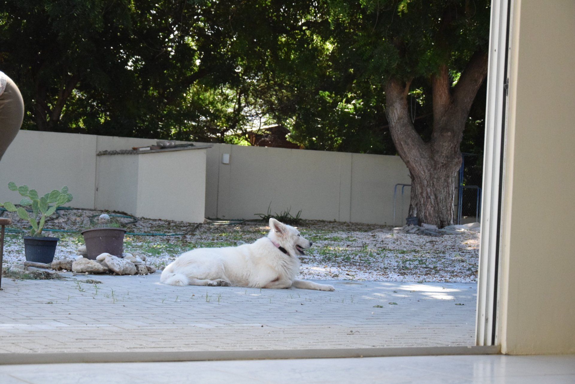 Finn is helemaal in z'n nopjes in onze nieuwe, grote tuin.