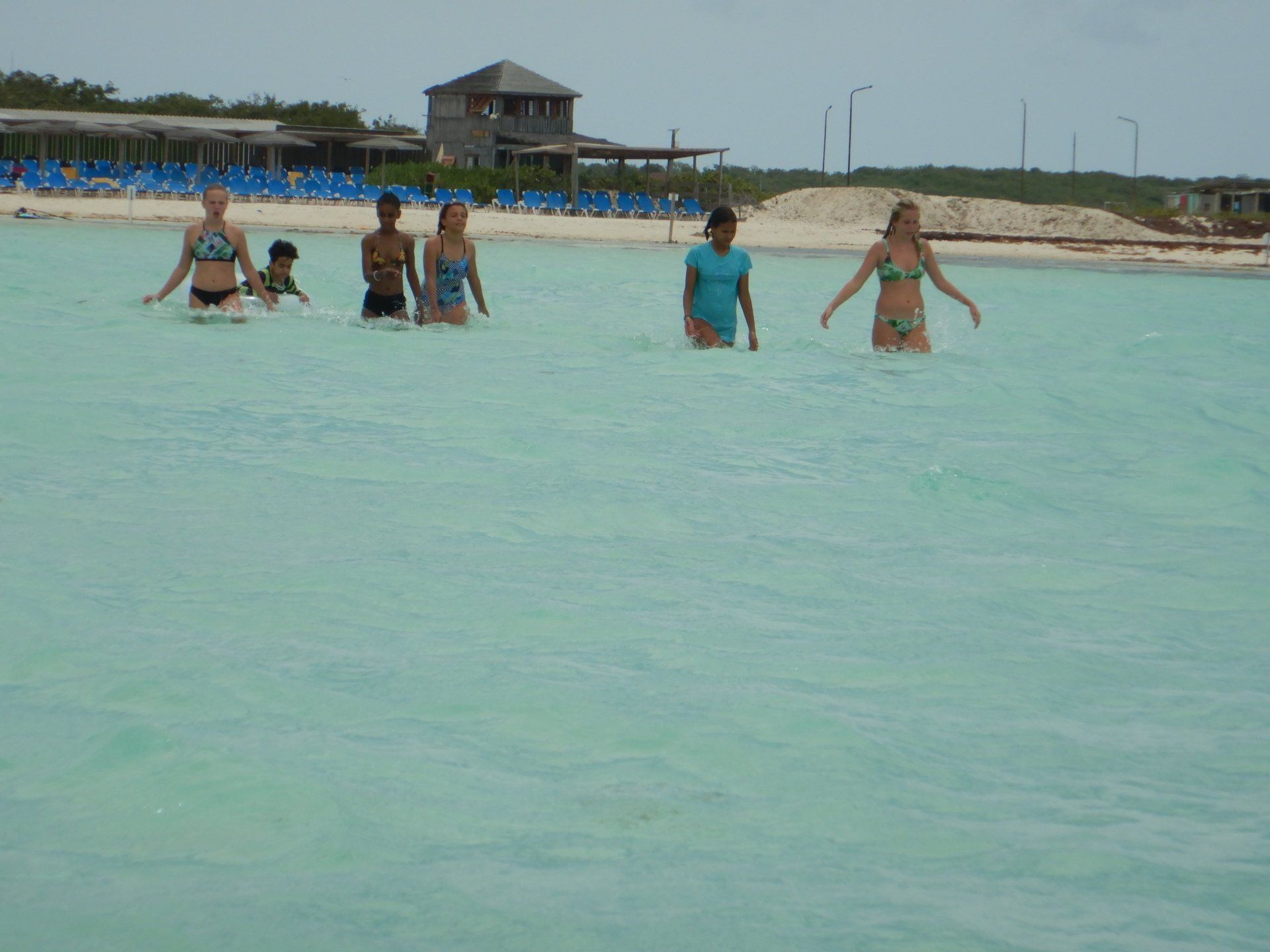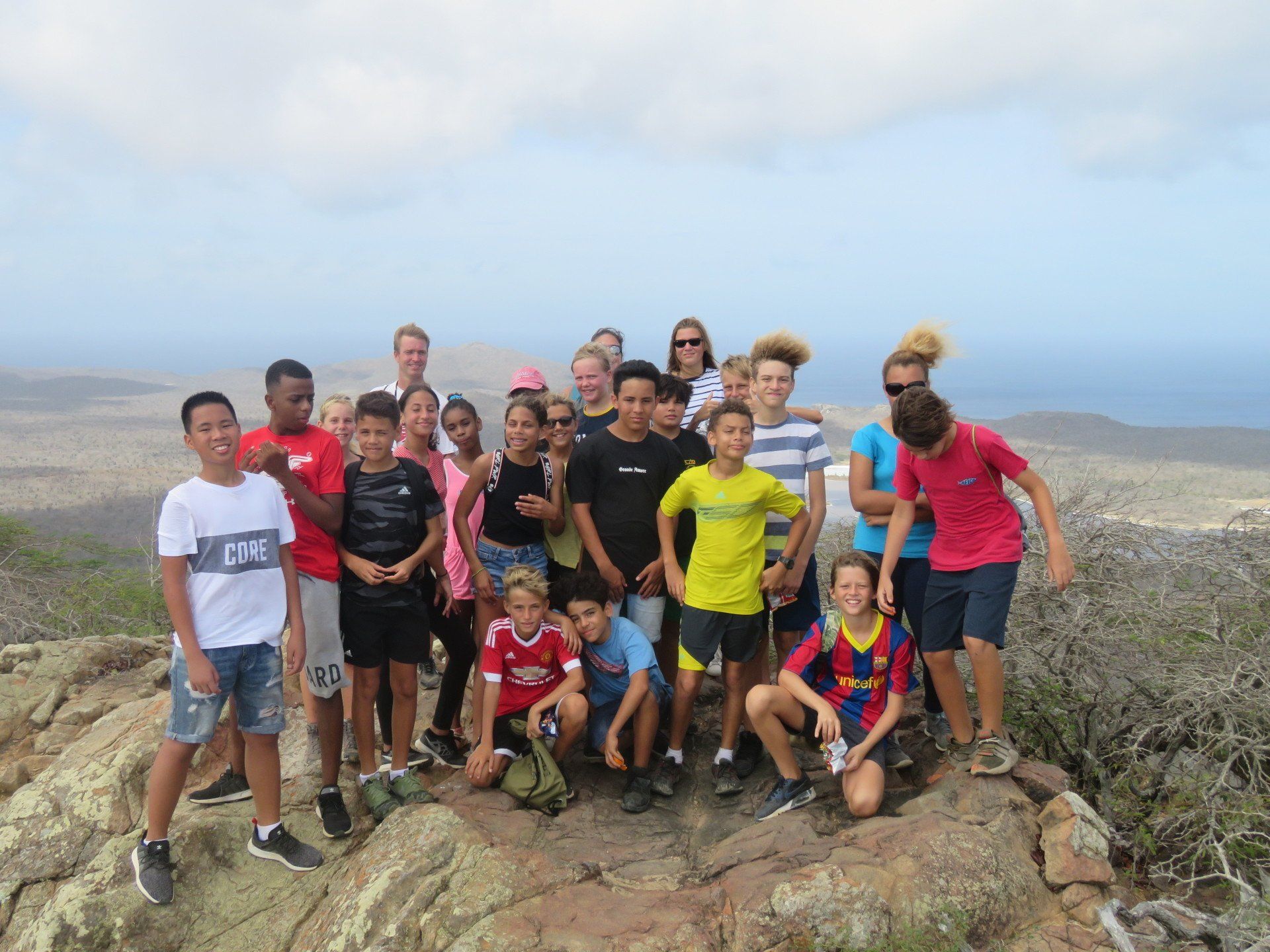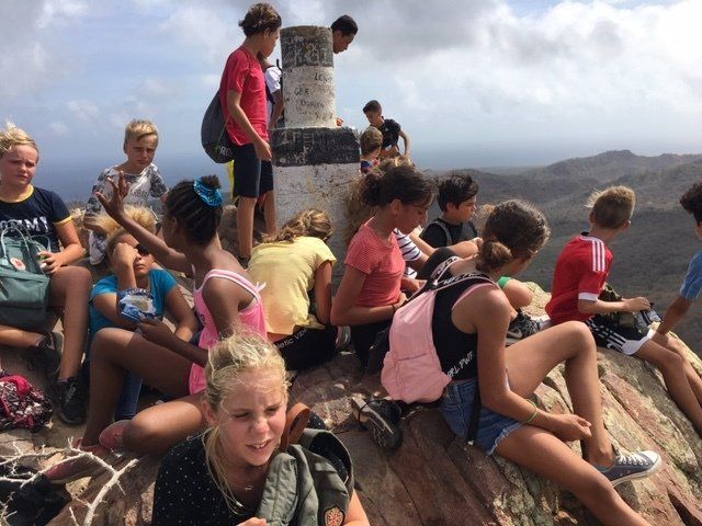 Na de toetsen was het tijd voor ontspanning en dus voor schoolkamp! En dat gaat hier een beetje anders dan in Nederland. Daar waar wij door de regen, tegen de wind in de brug op moesten fietsen en bij aankomst alles zeiknat op je bed moest leggen (oke, ik overdrijf), gaan deze klassen met het vliegtuig naar Bonaire!!! hoe leuk is dat?!? Woensdagochtend vroeg op HATO en vrijdagavond weer terug. Ze hebben o.a. een berg beklommen, de slaven-hutjes gezien, naar klein Bonaire gevaren om te zwemmen, bij de zoutpannen zout wezen proeven en een spooktocht in het donker. Die spooktocht heeft Kyra een beetje prikkelbaar gemaakt. Tijdens de tocht stonden er begeleiders en leerkrachten om de kinderen te laten schrikken. Toen meester Steven achter een boom tevoorschijn sprong, schrokken Kyra en Josha zó erg, dat ze achterover in de cactussen en pica's terecht kwamen. Kyra's handen, benen en billen zaten vol met irritante naalden (met weerhaakjes!). Juf Inge heeft ze meegenomen naar de eerste hulp om die lelijke dingen eruit te halen. Nadat de verdoving was toegediend, hebben ze er hard om kunnen lachen. de dagen erna waren wat minder om te lachen, want ze kon bijna niet op haar billen zitten. Afijn, inmiddels is afgelopen dinsdag (9 juli) de laatste stekel naar buiten gekomen.