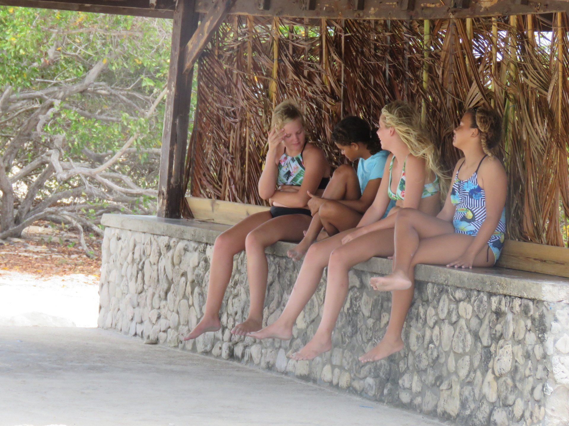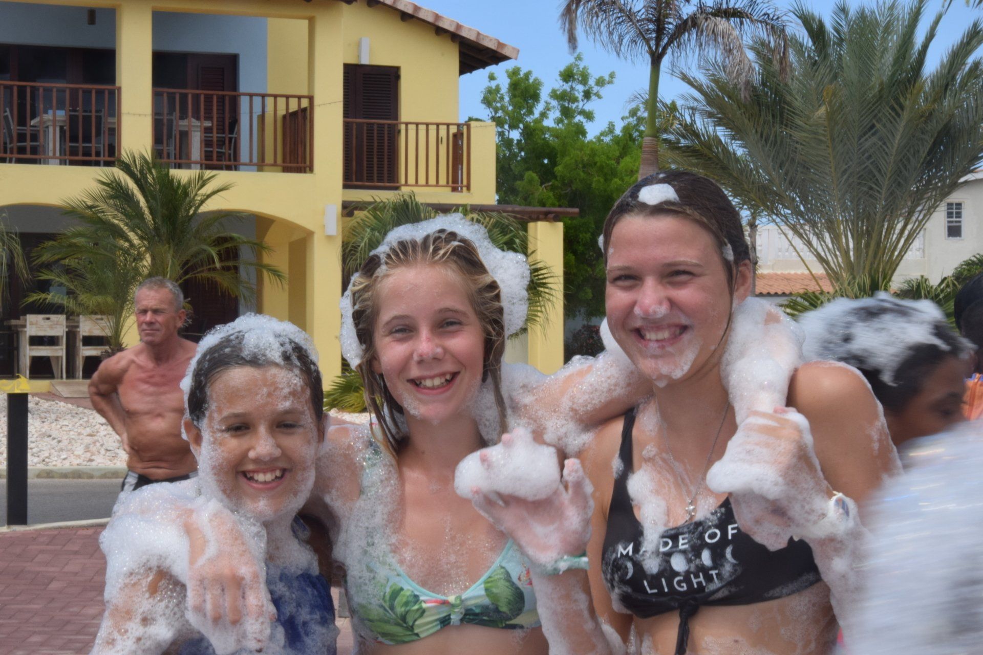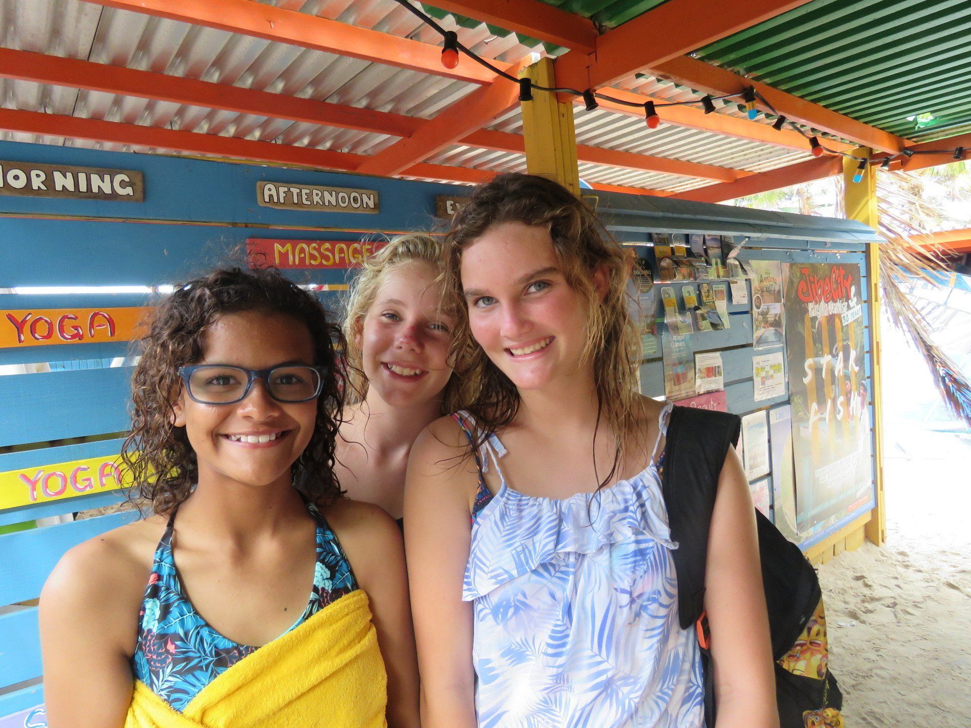 Na de toetsen was het tijd voor ontspanning en dus voor schoolkamp! En dat gaat hier een beetje anders dan in Nederland. Daar waar wij door de regen, tegen de wind in de brug op moesten fietsen en bij aankomst alles zeiknat op je bed moest leggen (oke, ik overdrijf), gaan deze klassen met het vliegtuig naar Bonaire!!! hoe leuk is dat?!? Woensdagochtend vroeg op HATO en vrijdagavond weer terug. Ze hebben o.a. een berg beklommen, de slaven-hutjes gezien, naar klein Bonaire gevaren om te zwemmen, bij de zoutpannen zout wezen proeven en een spooktocht in het donker. Die spooktocht heeft Kyra een beetje prikkelbaar gemaakt. Tijdens de tocht stonden er begeleiders en leerkrachten om de kinderen te laten schrikken. Toen meester Steven achter een boom tevoorschijn sprong, schrokken Kyra en Josha zó erg, dat ze achterover in de cactussen en pica's terecht kwamen. Kyra's handen, benen en billen zaten vol met irritante naalden (met weerhaakjes!). Juf Inge heeft ze meegenomen naar de eerste hulp om die lelijke dingen eruit te halen. Nadat de verdoving was toegediend, hebben ze er hard om kunnen lachen. de dagen erna waren wat minder om te lachen, want ze kon bijna niet op haar billen zitten. Afijn, inmiddels is afgelopen dinsdag (9 juli) de laatste stekel naar buiten gekomen.