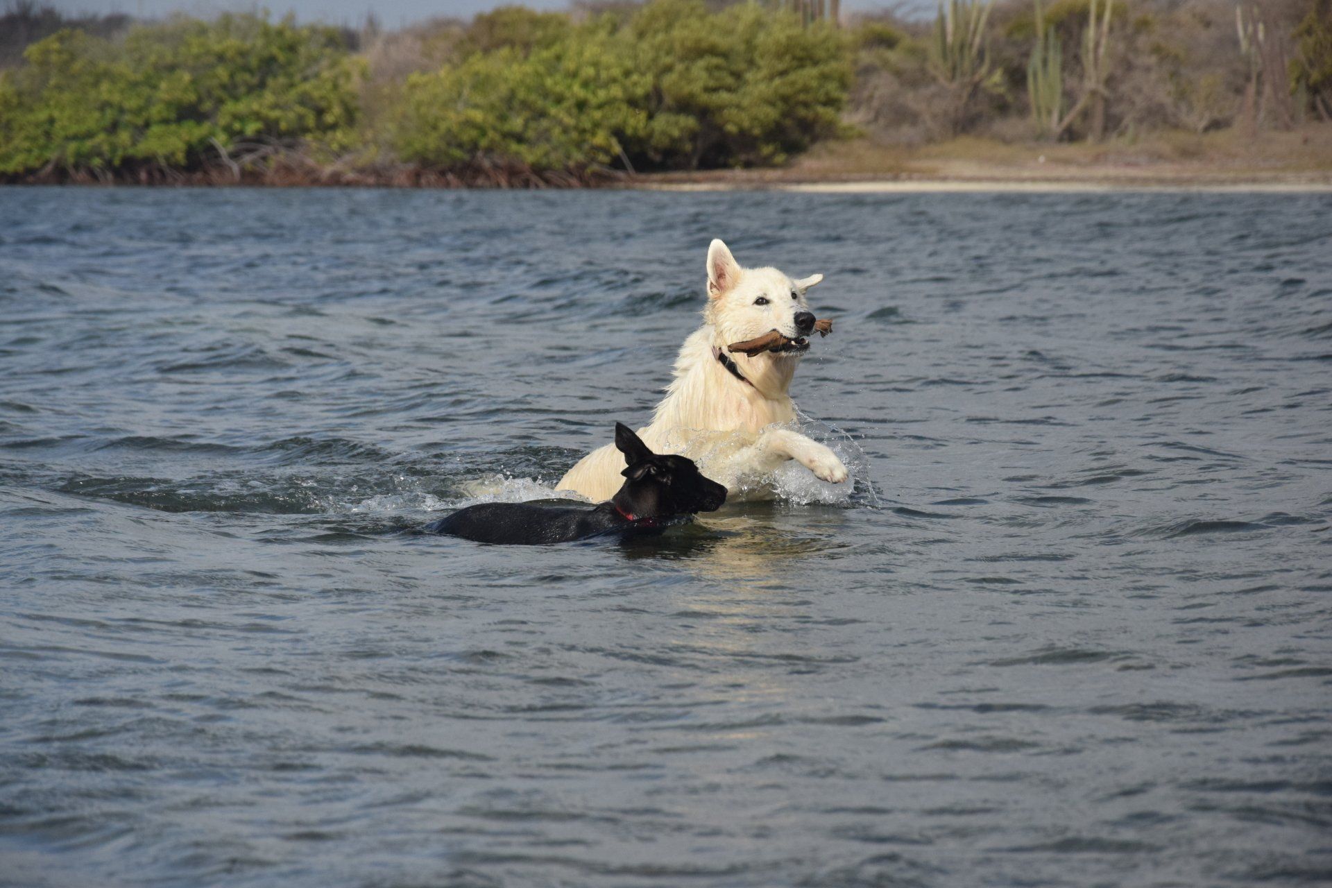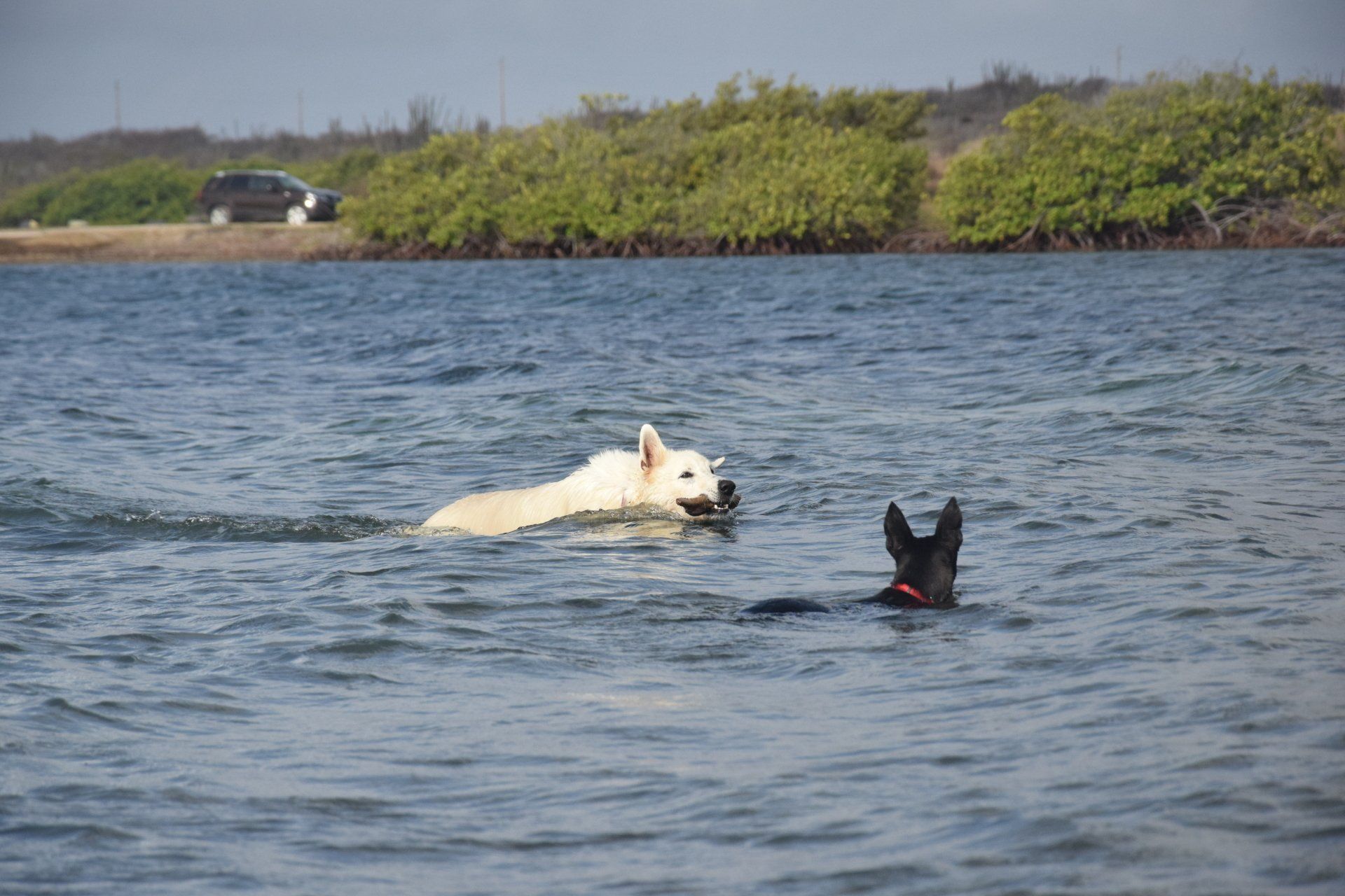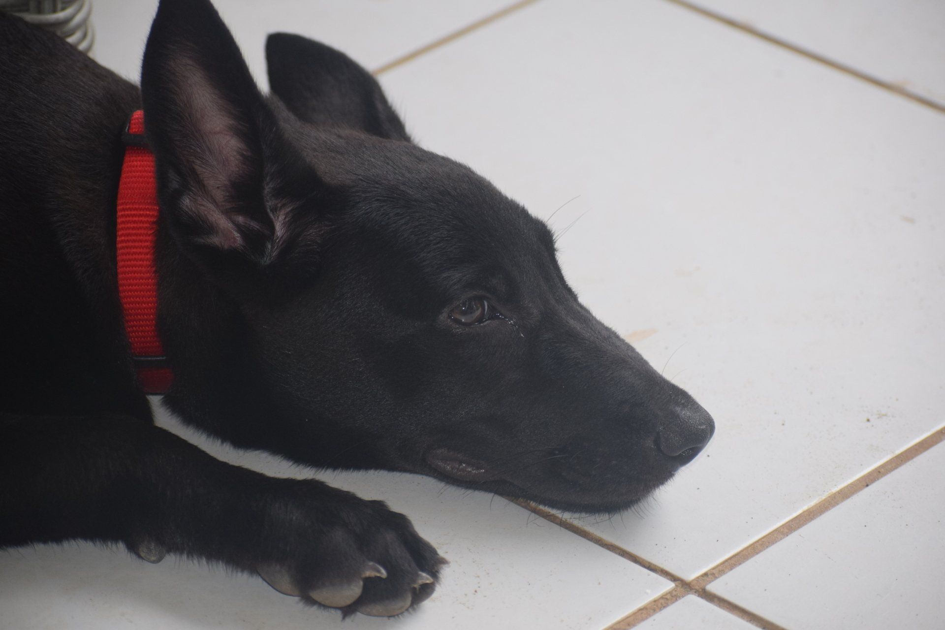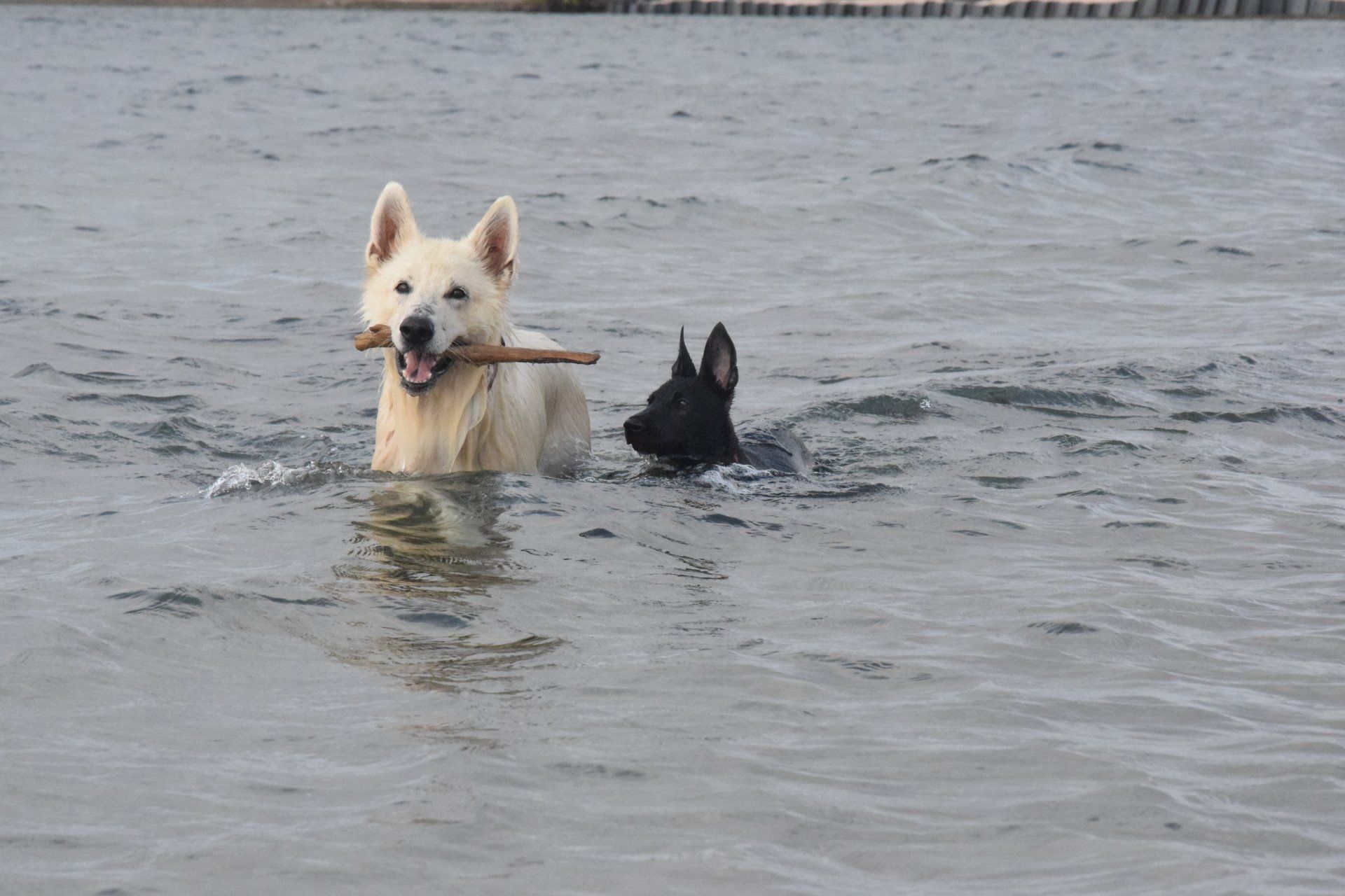 Sinds 21 juni is ons huishouden uitgebreid met een jonge pup, Evlyn. Evlyn is inmiddels 12 weken oud en een enorme ondeugd! Echt een jonge pup: alles ontdekken, overal je neus insteken, alles proeven, overal achteraan rennen en Finn de weg blokkeren. Ze houdt van zwemmen en zit vol energie. 's Avonds voor het slapengaan nog even spelen met een kakkerlak (of opeten) en 's ochtendsvroeg een korte blaf als je moet plassen. Finn moet het regelmatig ontgelden en is al menig plukken haar kwijt.