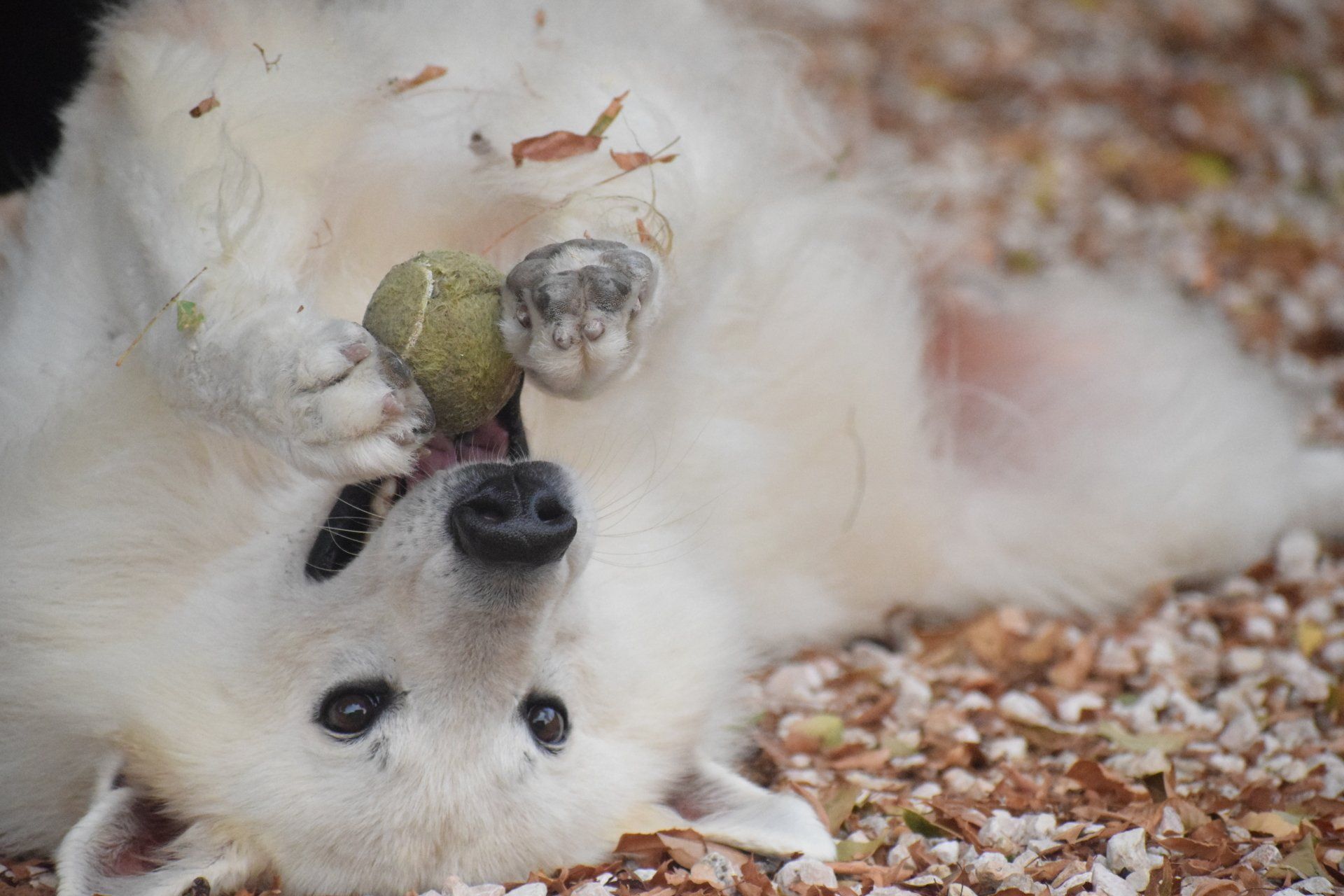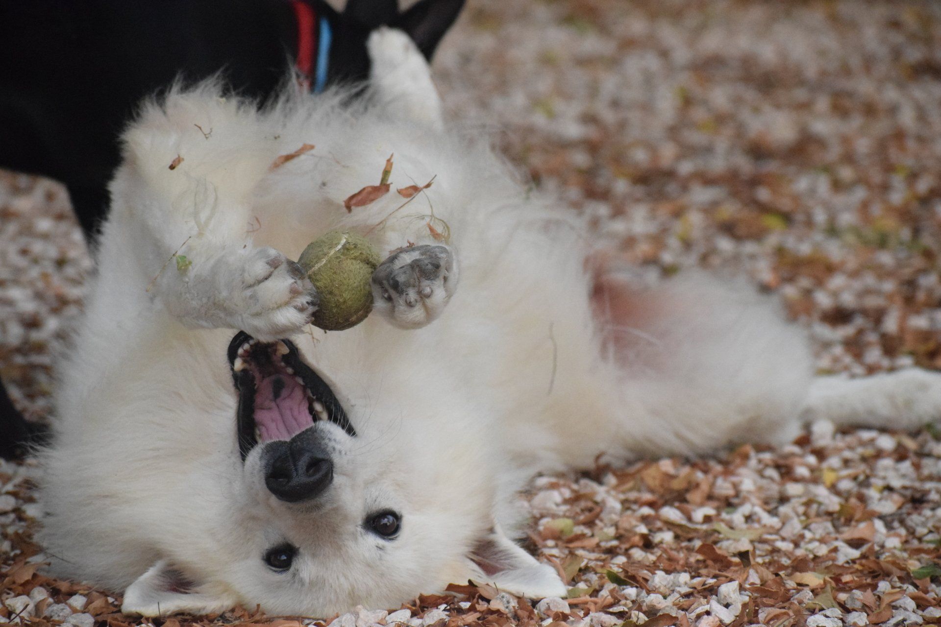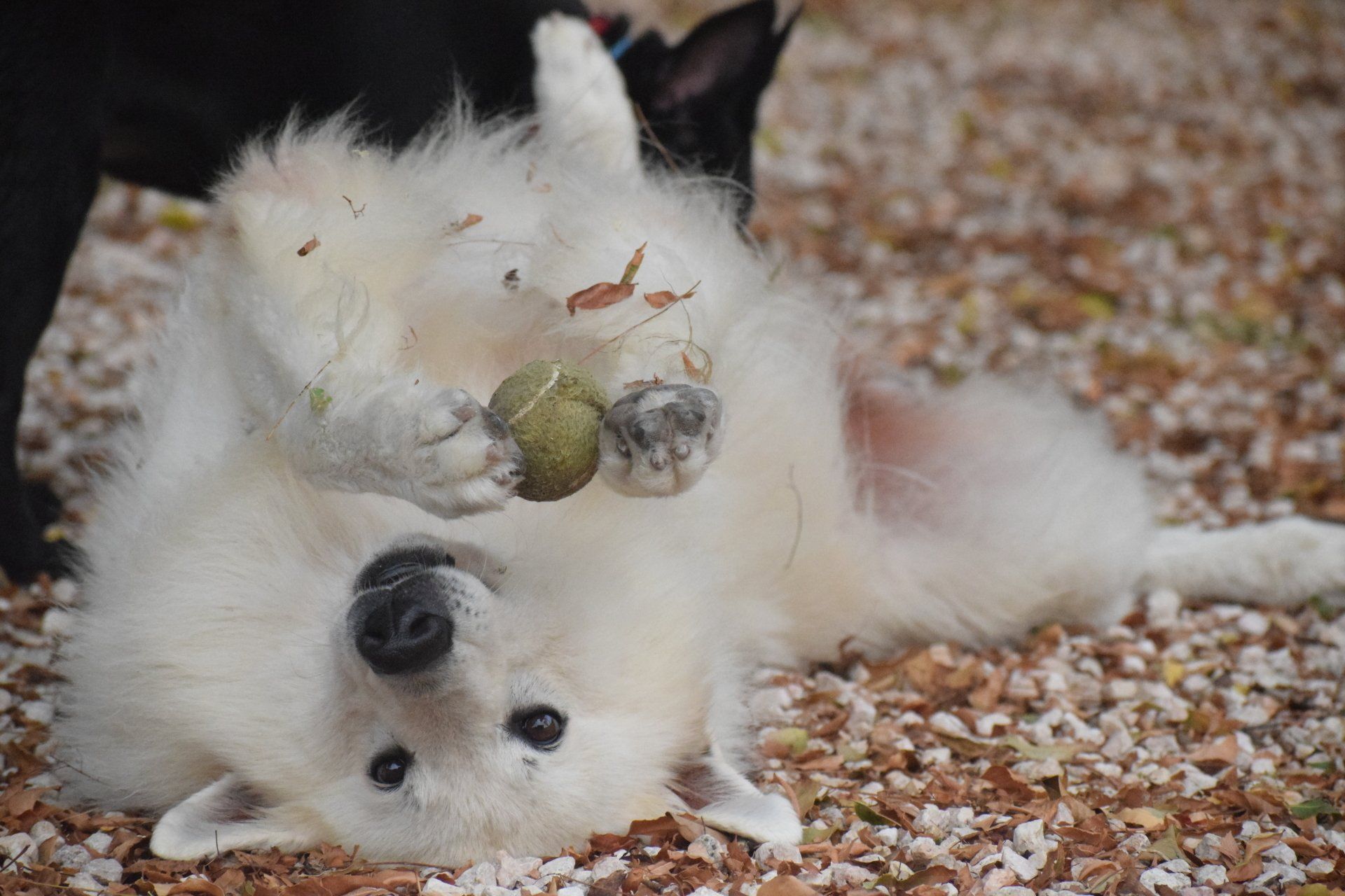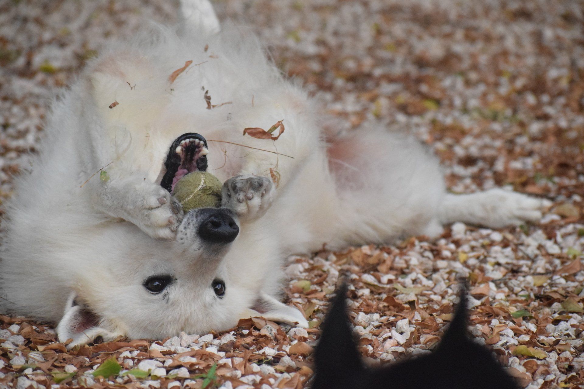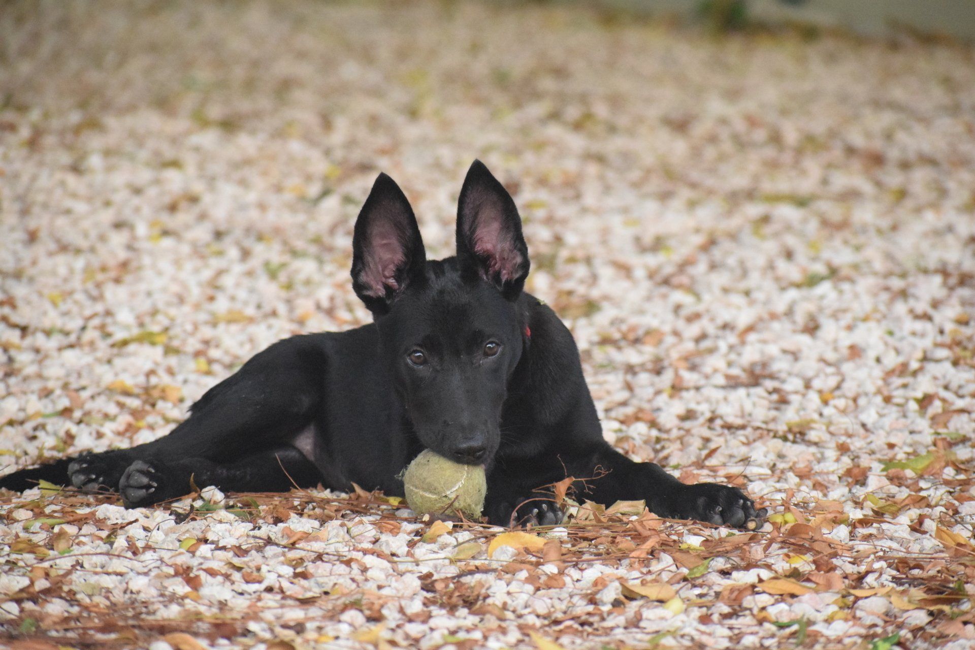 Sinds 21 juni is ons huishouden uitgebreid met een jonge pup, Evlyn. Evlyn is inmiddels 12 weken oud en een enorme ondeugd! Echt een jonge pup: alles ontdekken, overal je neus insteken, alles proeven, overal achteraan rennen en Finn de weg blokkeren. Ze houdt van zwemmen en zit vol energie. 's Avonds voor het slapengaan nog even spelen met een kakkerlak (of opeten) en 's ochtendsvroeg een korte blaf als je moet plassen. Finn moet het regelmatig ontgelden en is al menig plukken haar kwijt.